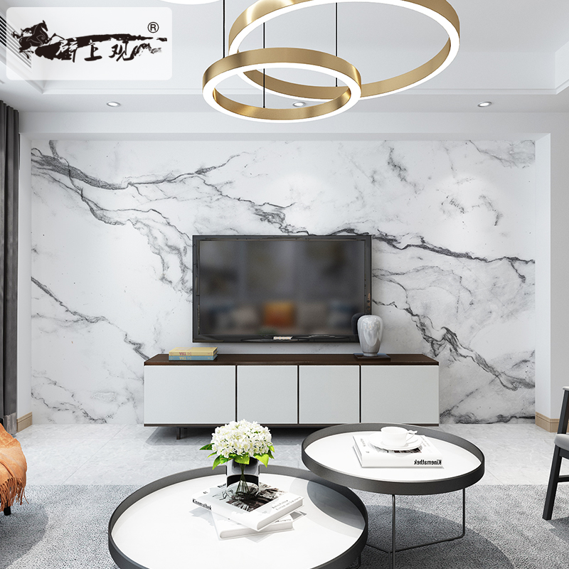 大理石一般都会分为人造大理石,或者天然大理石,不管是哪种大理石都是需要定制,定制出来的大理石,拼接出来的纹理效果非常有档次,而且很抢眼。现在越来越多的年轻人都不喜欢复杂的电视墙,往往既大气,又耐脏的大理石得到了很多年轻人的喜爱。电视墙不管怎么设计都很好看,不过最好中间贴大理石,两边用木饰面板做造型,两边再安装壁灯,显得非常有档次,效果很抢眼!
