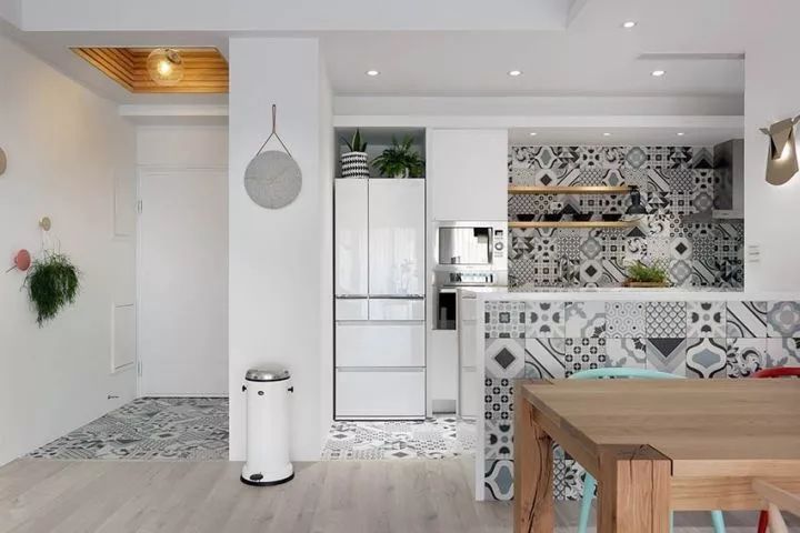 ▲ 墙砖虽然是普通的白砖,只要不同的拼接方式厨房门装修效果图,就显示得很不一样!