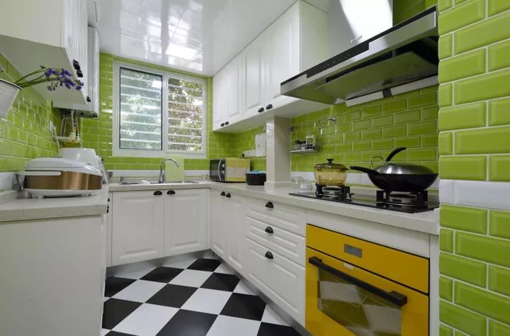 当然,有些人就是喜欢彩色,喜欢撞色,喜欢与众不同,包括在厨房的装修中,也会加入浓烈的色彩。我们来看看厨房能玩出什么花样。