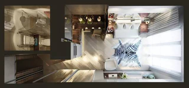 经典之余又不失豪华氛围,尽管它的面积不足30平米。每一寸空间几乎可用的地方都达到了目的。从这幅俯瞰图可能大家视觉上还不够明显,那我们继续接着去看吧!