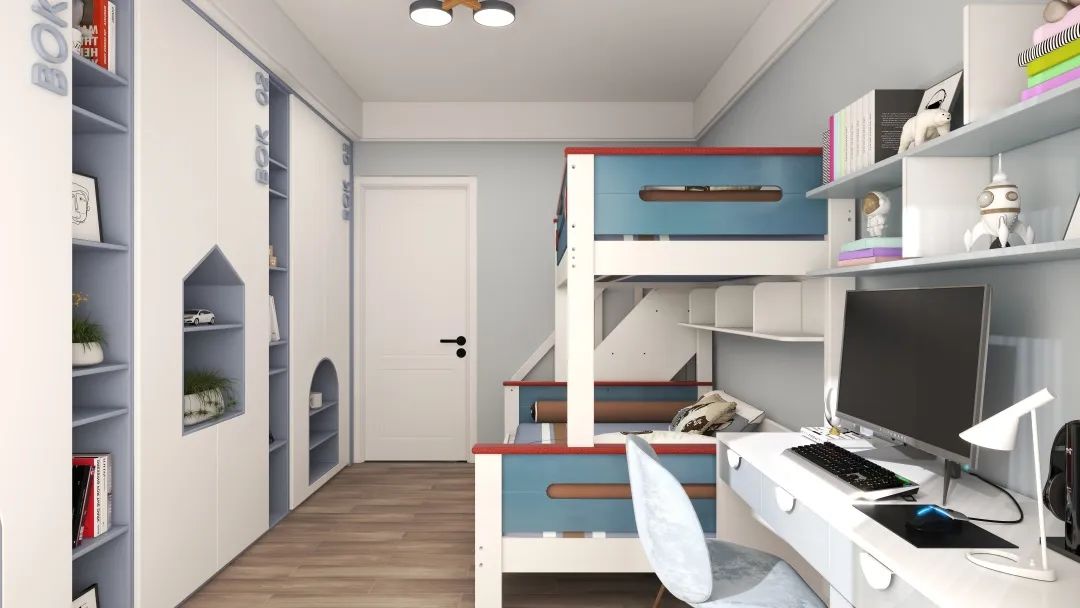 一个完整的儿童房,应满足不同时期的孩子对房间不同功能的需求,能随着孩子的成长而“成长”。儿童房除了满足孩子的睡眠需求,还要有学习、休闲和收纳,这三大功能需求。童年是培养孩子独立能力的好时机,可以引导孩子在专门的区域做该做的事。