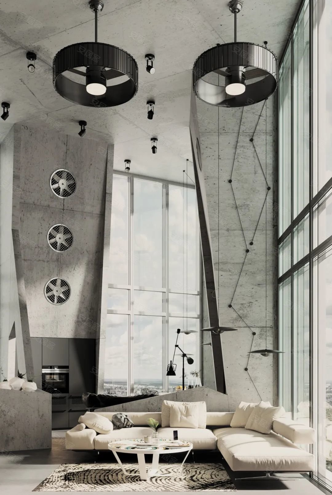 佰富彩4. 吊顶:工业风一般不做吊顶,将管线裸露出来,直接上漆,这样更能够直接的展示出一些工业元素。