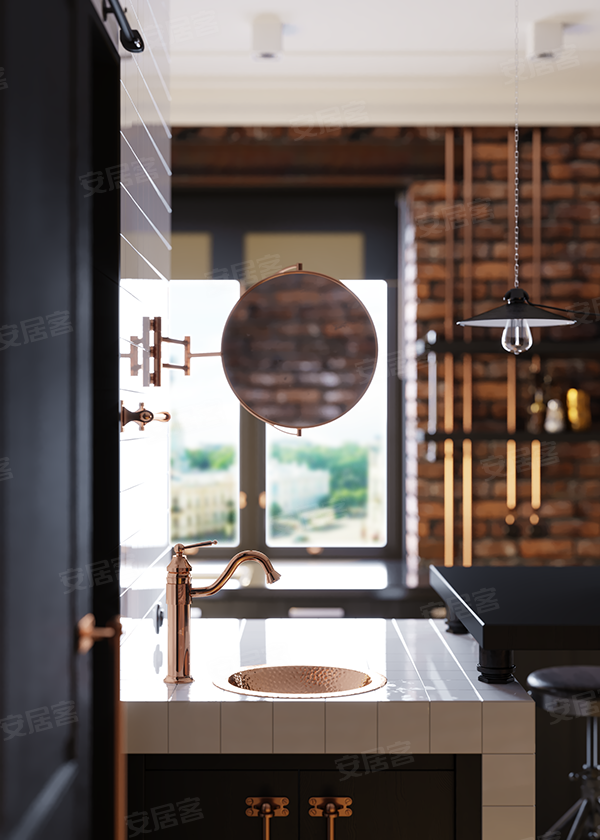 佰富彩工业风用大面积的裸砖、金属管道、水泥地、混凝土组合成粗犷、神秘,又带有一些颓废旧工业气息的空间,极具不羁与个性。