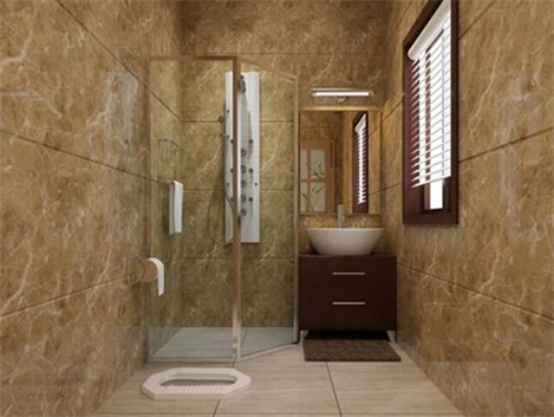 现在很多房子都只有一个卫生间,所以用坐便器不太卫生,用蹲便器是非常恰当的做法,就像图中,就是使用了蹲便器,丝毫不占空间90平方装修效果图,多出的位置还可以做淋浴房,做到了干湿分离,非常值得借鉴。另外。为了不让卫生间显得那么冷,墙面选用了黄色的大理石。
