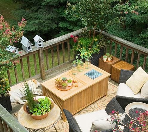如果您是园艺爱好者,不妨参考下面图片展示的案例,结合一些木制架子、瓷砖砌成的花盆,把小阳台布置成小花园,天天都能见到喜爱的花草树木!
