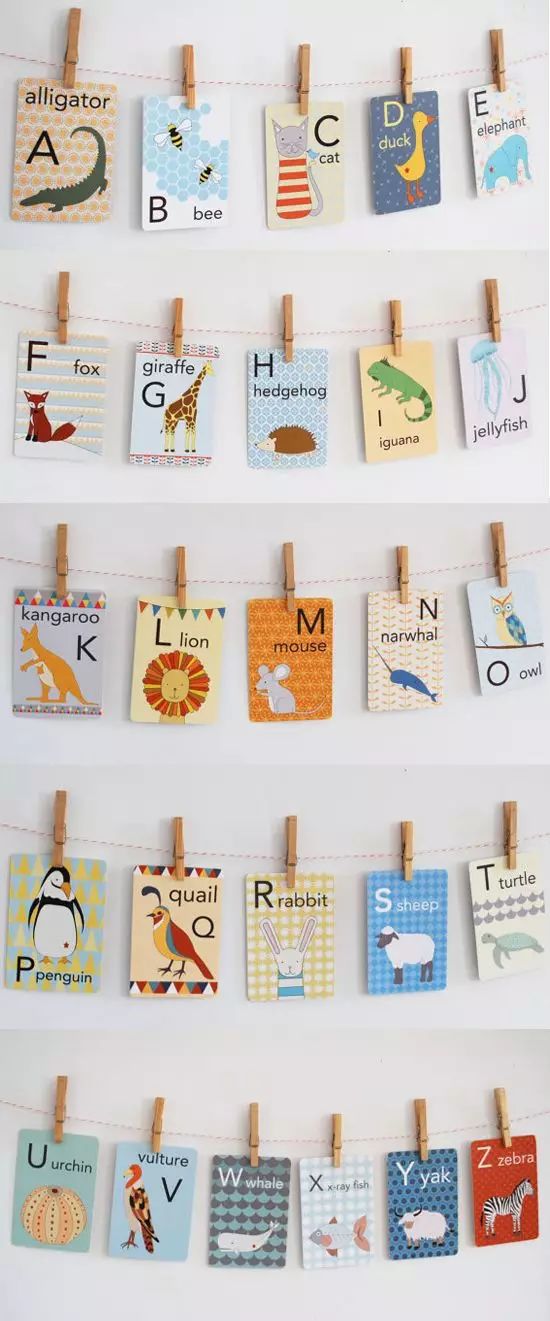 还可以在墙上挂上简单色彩明丽的字母表,有助于孩子的语言学习和对事物的辨别。