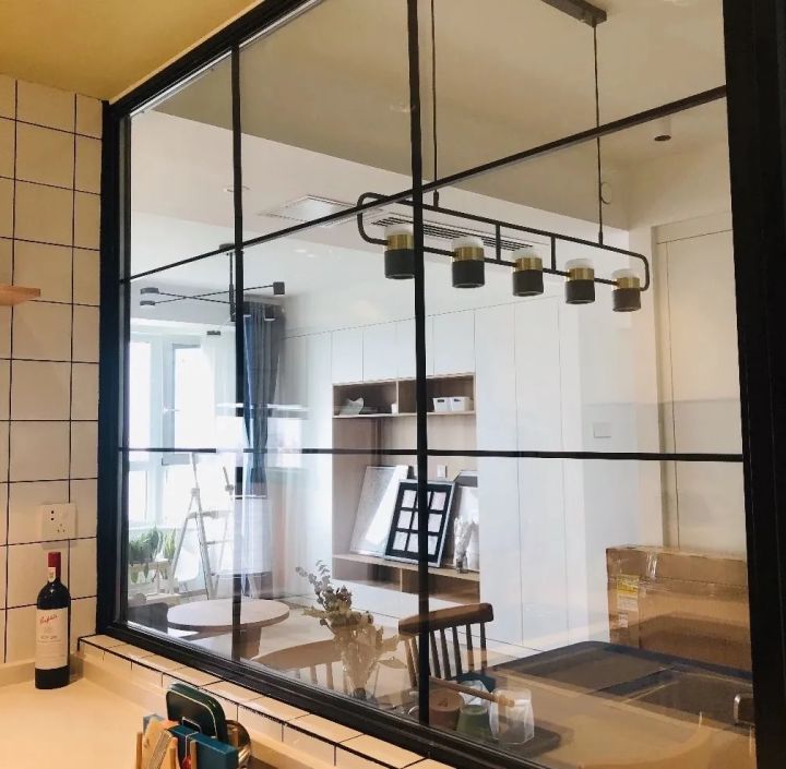 玻璃隔断的边框最常用的、性价比最高的就是合金边框,大多数家庭使用最多的是黑色,可以契合工业风、北欧风和现代风。