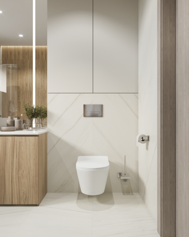 佰富彩马桶上方是经常被人忽略的收纳空间,可以内嵌一个小小的收纳柜,虽然储物量不算大,但也可以提高空间利用率,让卫生间保持干净整洁。