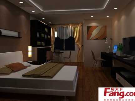 卧室空间装修很简单,只用了淡雅的欧式花纹壁纸以及白色吊顶及射灯,地面铺设木地板,整体注重软装。融合的卧室装饰灯,让整体卧室看上去宁静舒适;卧室空间的卫浴区,让肌肤与水零距离接触,马赛克的朦胧花纹搭配高雅大气,仿佛闭着眼睛在空山享受温泉,是80后一族的最爱。