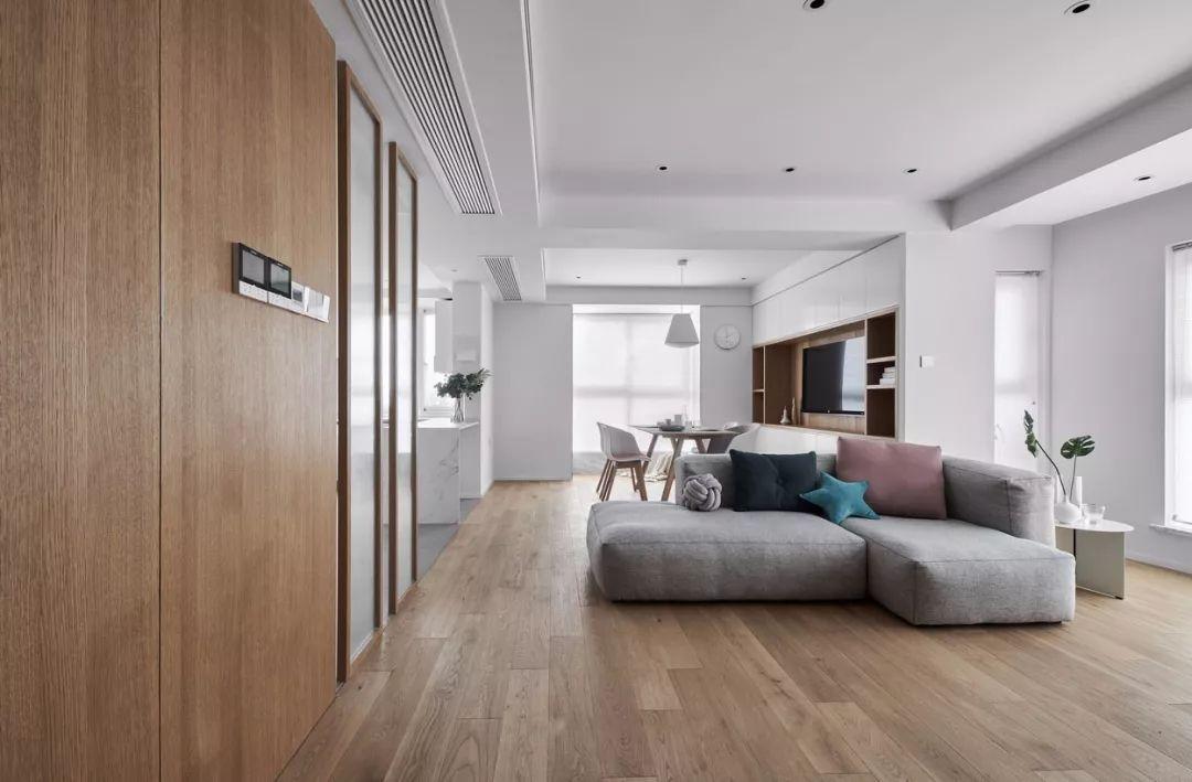 这套房子的居住者是业主夫妇、父母与2个小宝宝,整体空间设计围绕2个小宝宝为主,尽可能为孩子们提供宽敞舒心的活动空间,在客厅的布局上取消了茶几与电视机,最大化留空出客厅空间,让孩子在家的玩耍更加轻松自然。
