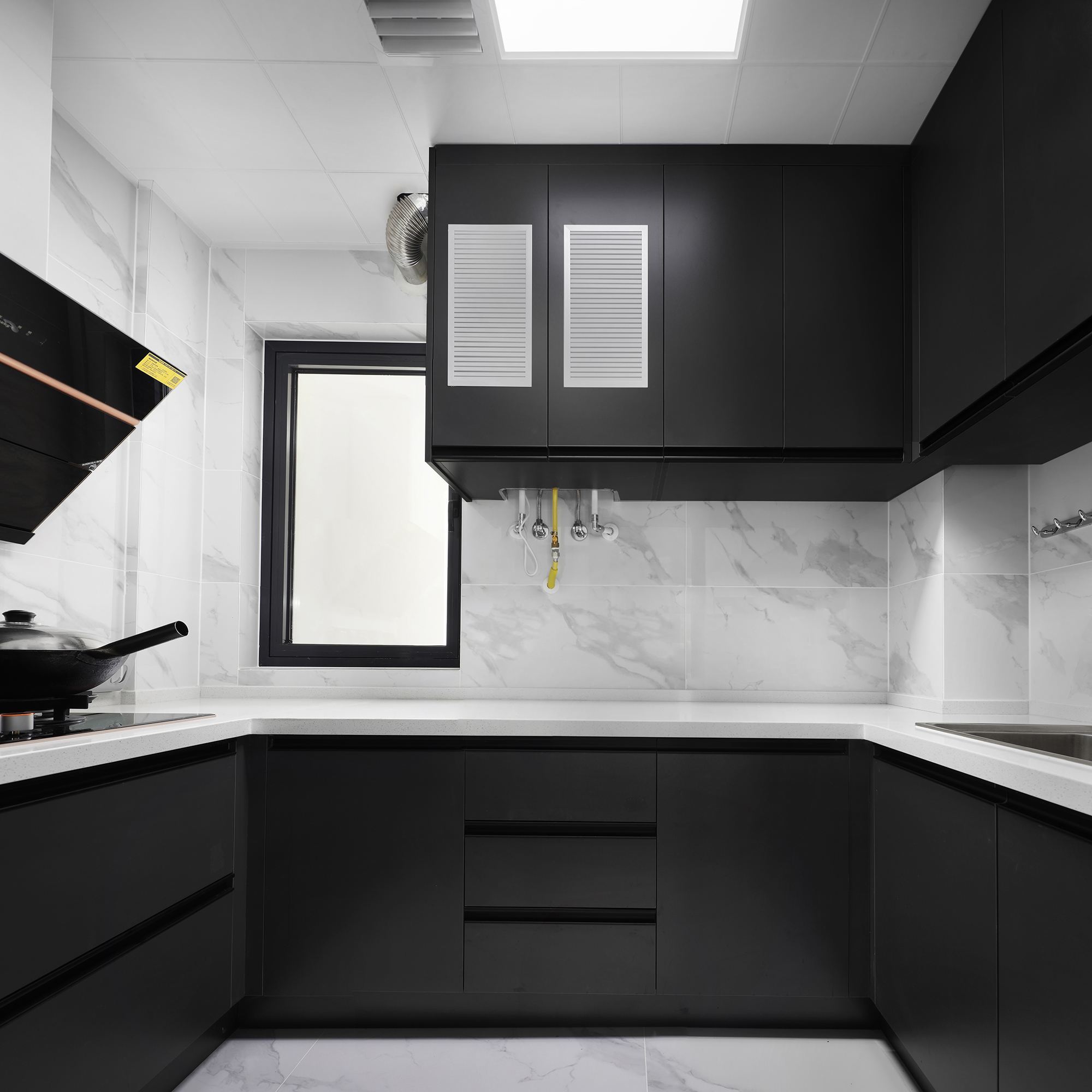 佰富彩1、白色百搭:适合光线不好或者空间较小的厨房