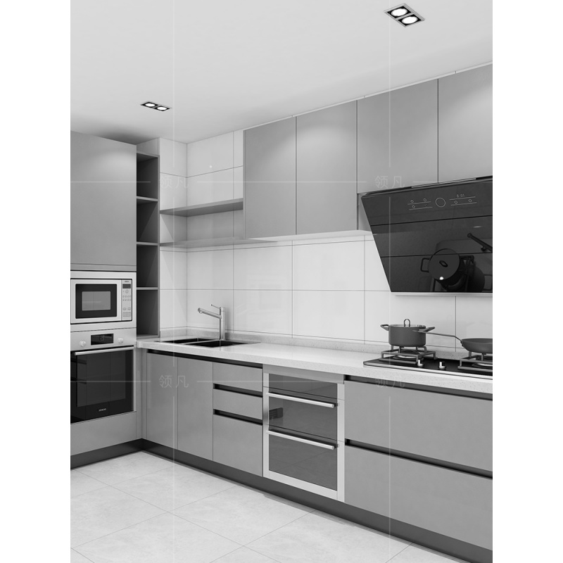 灰色调的厨房十分的柔和有力量,可以散发出低调的奢华和档次感,让您家厨房在上升一个档次。