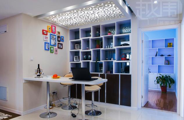 客厅酒柜装修效果图佰富彩:多功能的酒柜可以摆放花瓶、艺术品、古董等,最上一层甚至可以用作书架。各种尺寸的方格让人体验到了德国式的精确与认真。