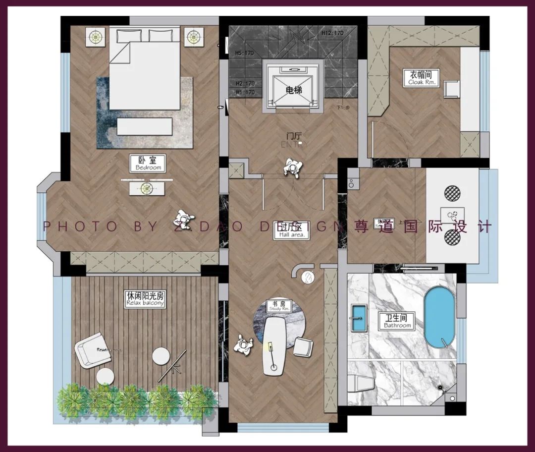 佰富彩三层我们设计成了整体的套房设计,将原始的空间上的通道区域修改呈现了空间的连贯设计,书房的穿插是整体空间链接的关键所在,也是整体套房入户的一道风景线,书房和阳光房也是互相有关的,这样在看书后,也能在阳光房享受自然的时光。将衣帽间和静坐空间与卫生间分布在了北边区域,这样在划分上也是合理的使用空间了。