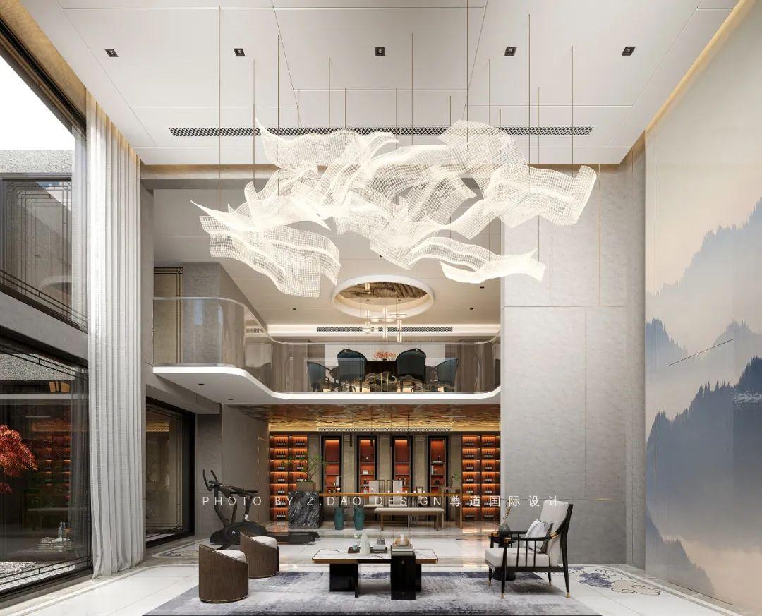 佰富彩新中式是传统与现代的有机结合,是对传统的建筑文化的继承与发展,此案不是在以往的风格中置入代表新中式的装饰物件,而是将富有感情色彩的线条、创意、结构悄无声息的融合一体,最终会心一击达到新的场域力量。