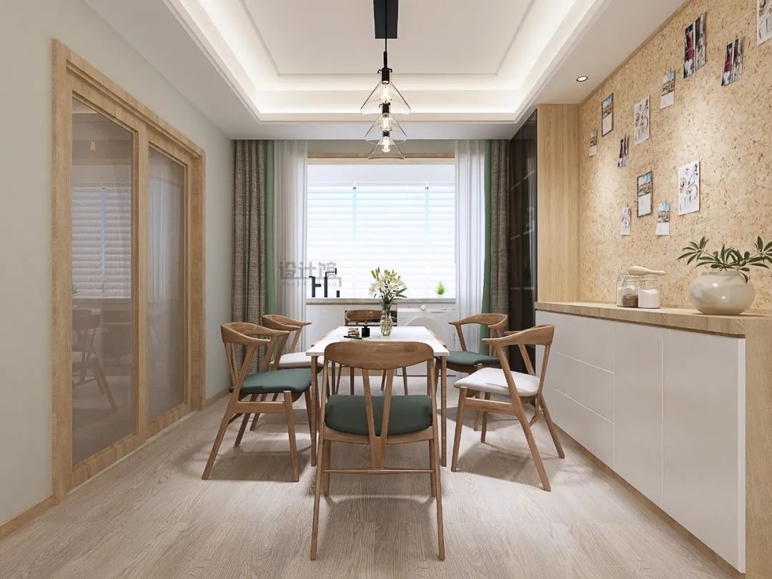①餐厅靠窗位置在竖厅户型中,餐厅的长度较大,宽度刚好,那么就可以在靠窗位置布置餐边柜,这样既不影响采光,也让空间显得更加优雅实用而大方。