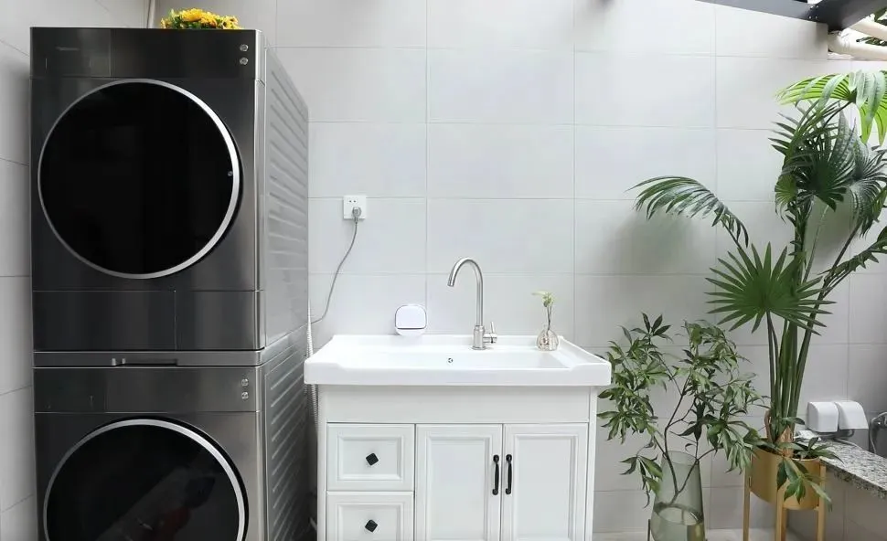 采用电动山水端景,不仅将预算控制在范围内,还实现了沈先生的园林诉求;左侧的洗衣区也为洗衣晾晒预留位置。