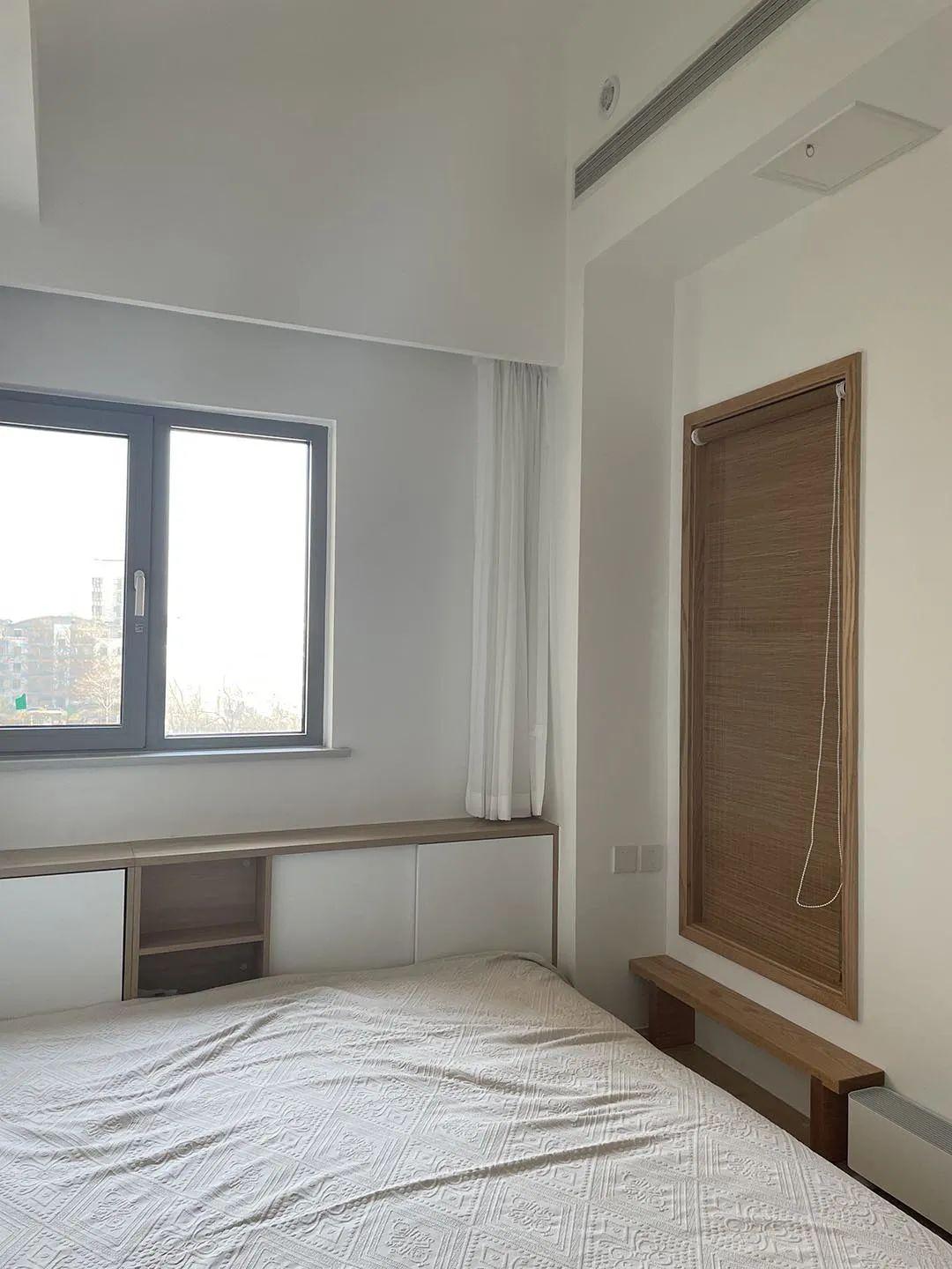 改造前,弧形顶面的最低处就落在主卧及次卧,加上空间布置不当,舒适性明显不足。改造后,将2.7米的梁下空间装修为衣柜,满足收纳需求。