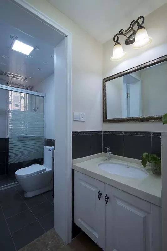 这是客卫,把洗手台装在了外面,里面还装了淋浴房,把干湿分离做的比较彻底,使用起来方便极了呢。