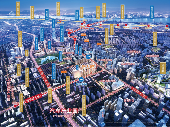 从裕丰街站上地铁,4站即可到达西客站南广场,到西站商圈也就十几分钟的路程。另外通过西客站南广场与2号线换乘,9个地铁站即到红谷滩中心地铁大厦站;同时4号线还可以与1号线、2号线同线换乘,全城通达。就在日前(2020年9月8日),《南昌市域综合交通规划(2020~2035)》对外公示,其中最引人瞩目的是,九龙湖西区域将建设九龙湖站。也就是说在新力城附近,将建设一个大型铁路运输枢纽系统,接驳进整个南昌的铁路交通网络之中。