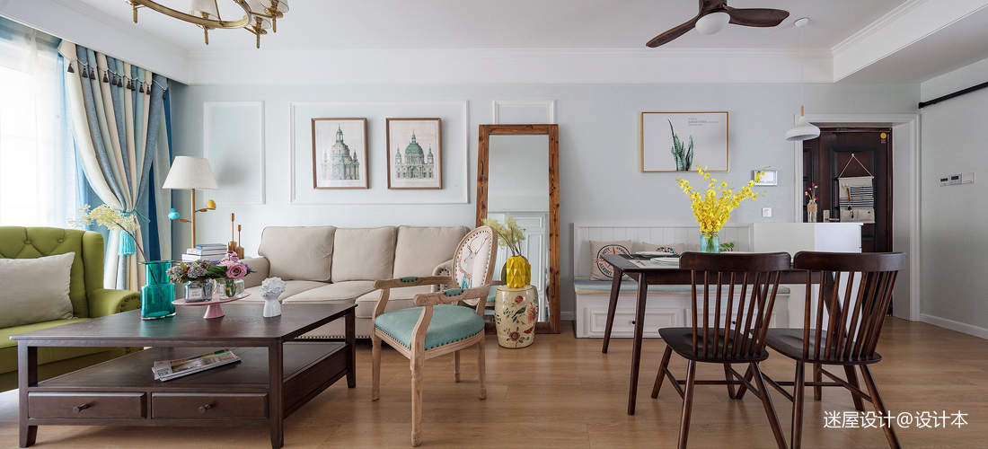 佰富彩客厅窗帘装修效果图美式轻奢110平米住宅设计其他客厅设计图片赏析