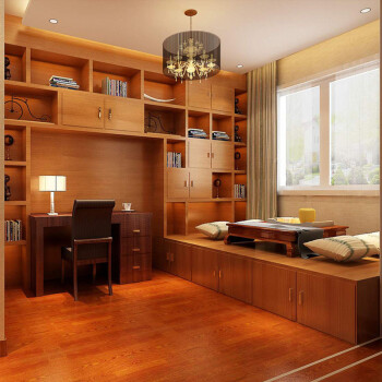 次卧里床头地方将转角电脑桌和床一起连起来,让空间整体感更加充足,而再搭配一些吊柜实木家具装修效果图佰富彩,可以放上一些装饰品为房间增添一丝暖意。