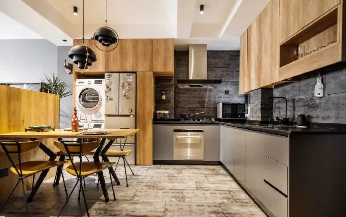 小户型没有西厨,可以放在餐厅,存取都很方便,为了让空间的利用率扩大,多会选择定制餐边柜,这样就可以考虑把冰箱嵌入到餐厅的餐边柜里面,取用也更加省心。