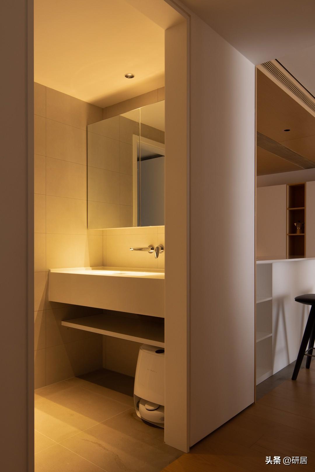 将客卫干湿分离设计,使用上更为便捷,而且还将扫地机器人放在这里,能让公共空间更显干净。