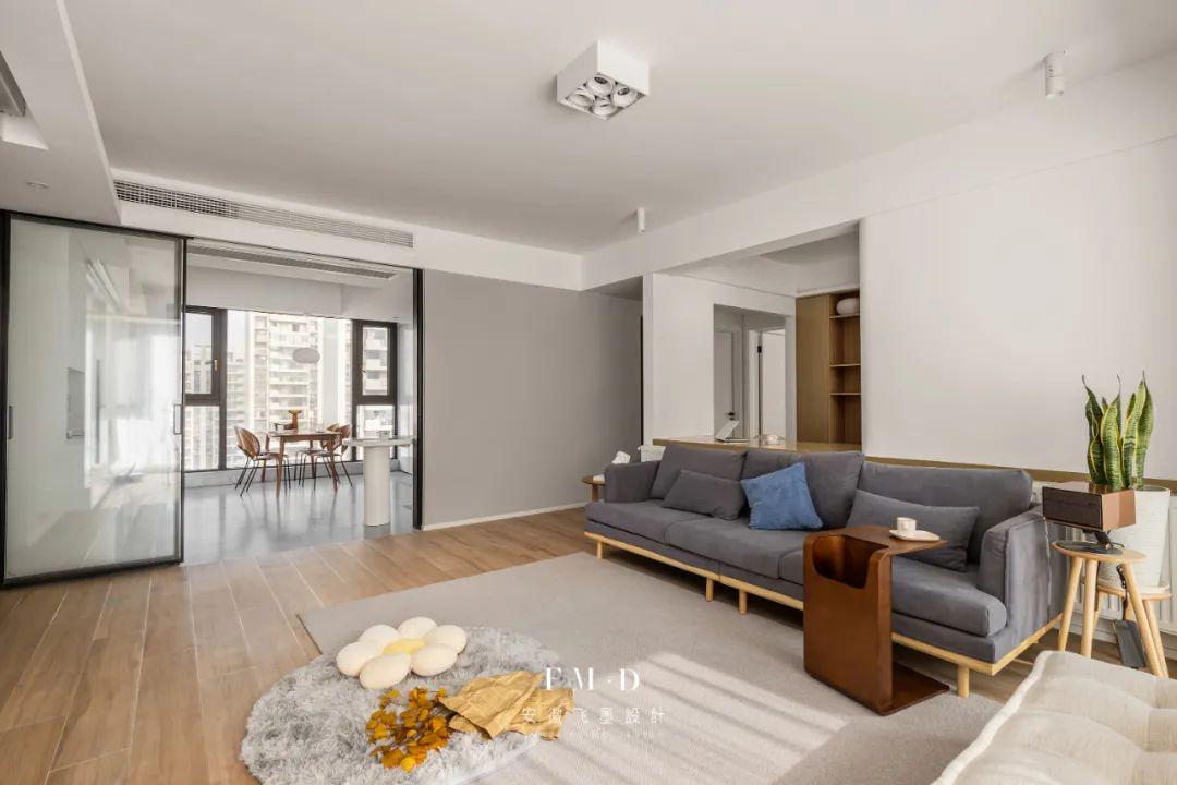 正常情况下,推拉门总有一半或部分门体是遮挡门洞的,如果不想要门体露出,可以考虑嵌入式设计: