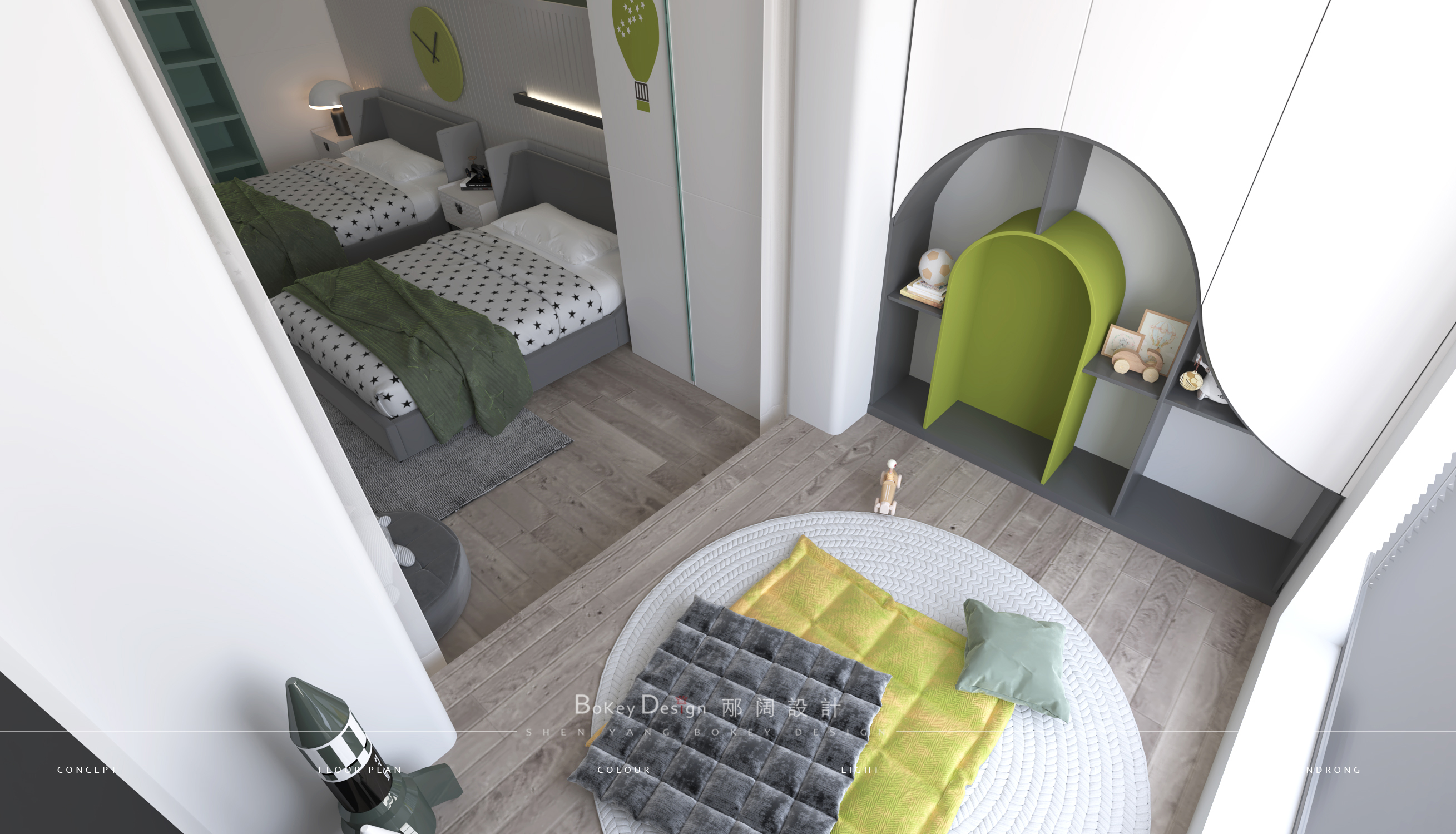 卧室装修效果图绿色系儿童房韩式装修效果图,活力与好奇的童年现代简约卧室设计图片赏析