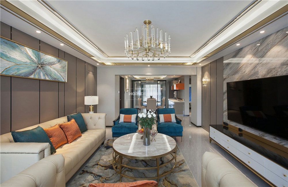 客厅电视背景墙装修效果图欢乐佳园装饰|现代轻奢风格韩式装修效果图佰富彩,满潮流混搭客厅设计图片赏析
