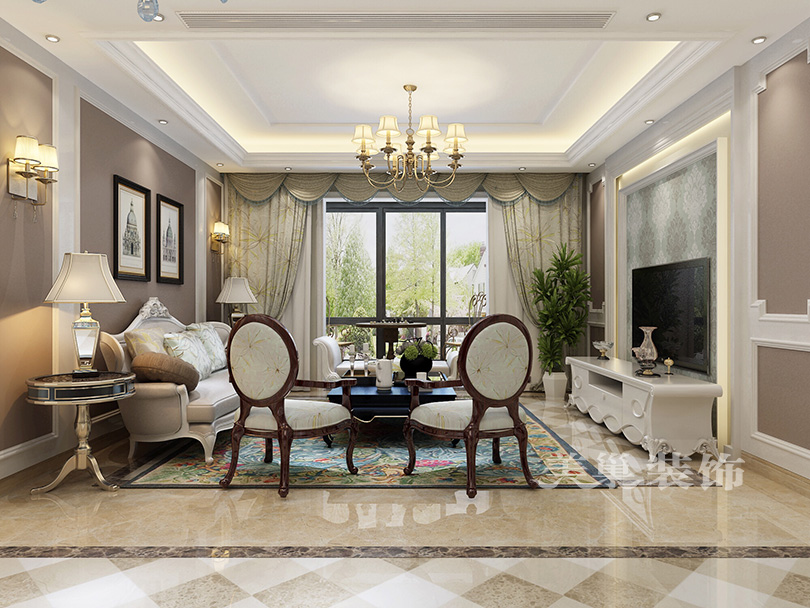 佰富彩客厅窗帘装修效果图240m²欧式低奢风美的让人窒美式经典客厅设计图片赏析