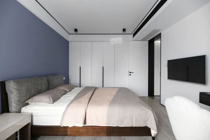 佰富彩如果卧室面积较小,也可以在床头墙设计衣柜。