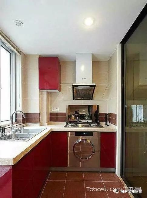 从这张1米小阳台改厨房效果图里小阳台装修效果图,可以看出设计师注重简约与实用。狭小的阳台,被改造成厨房各空间功能齐全。红色橱柜的选择,给人一种热情奔放的感觉。阳台设计的小筒灯,小却明亮。