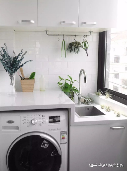 有的人家会选择在阳台放洗衣机,跟洗衣机搭配一般会做一个洗衣机柜子,有选择木质的有选择砖砌的,砖砌的相对要好一些,不怕潮湿还结实耐用,另外在阳台风吹日晒的环境也不容易坏。有了洗衣机柜子上面就会搭配台面还有台盆水龙头等。由于阳台的台面使用的是比较少,那么在选择台面石材的时候石材装修佰富彩,这个地方可以用就是价格相对来说便宜一点的材料,如果是用石英石可以用价格稍微便宜点。