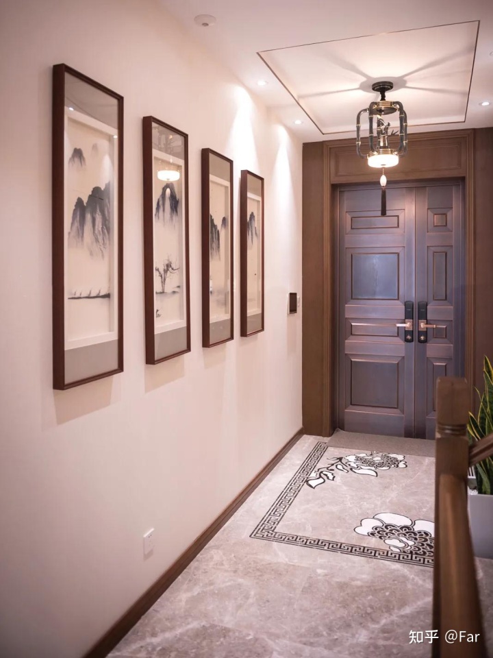 佰富彩玄关,以四幅中国传统山水画,打开整个家新中式的风味。