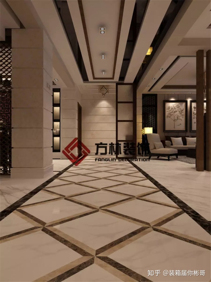 佰富彩设计理念:它在形式上以浪漫主义为基础,斜拼的地砖、朴素多彩的背景墙、灰色的地毯、简洁大方的家具,让室内感受到豪华、富丽的特点,充满强烈的动感效果。