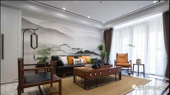▲现代中式风。同样是中式,现代中式不同于传统中式,没有传统的死板和厚重,多了一丝现代气息,颜色上同样是偏向深色,但是可以用现代元素进行点缀,整体风格受中年人追捧,后期家具也是造价不菲
