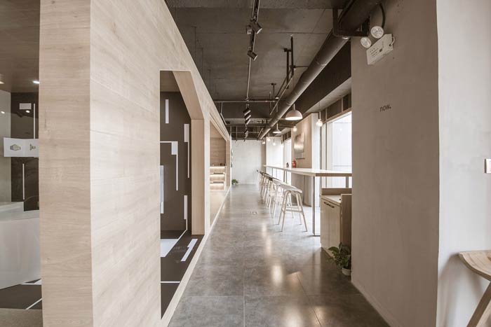 咖啡店走廊设计:相对封闭的空间在左侧,开放的空间在右侧,过道将封闭空间与开放空间连接在一起,畅通的过道承载起整个空间的运作。