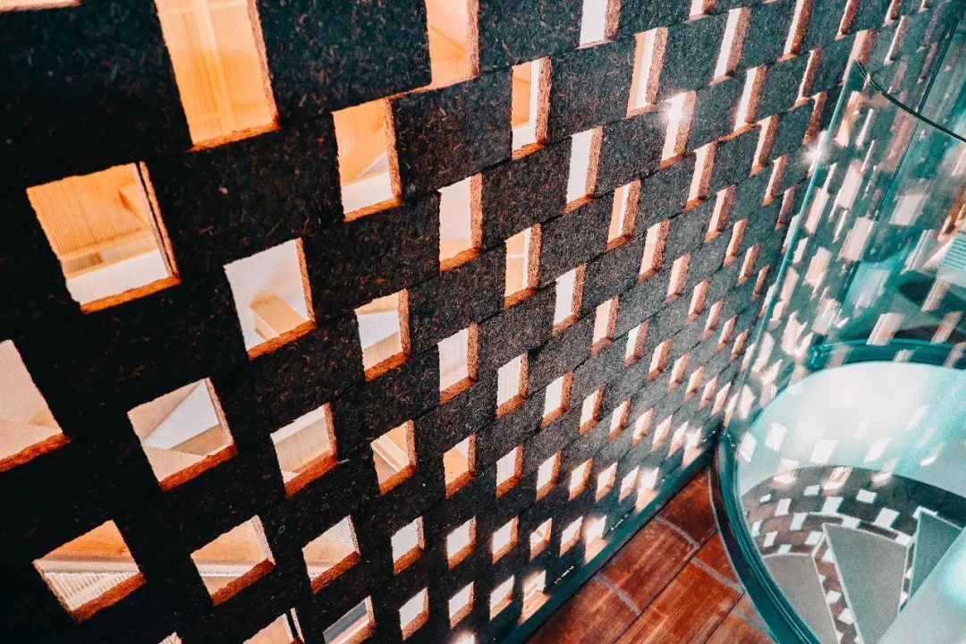 这个神秘的小楼梯上,还有专属于「上下」的茶屋,中间的隔档用的也是普洱茶砖相接,充满了茶界的意境。