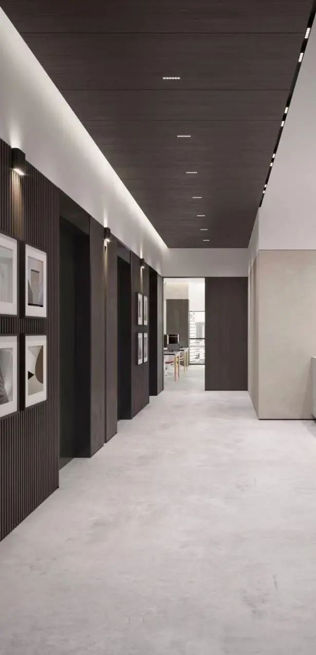 1L和B1楼均是车库,而且配备了两部电梯,电梯直接停靠在每层的办公前台区域,让上下楼的同事沟通起来方便、快捷,而且电梯两侧的墙上采用了格栅板作为装饰,搭配顶部的射灯无形之中提升了中兴财光华的办公档次。