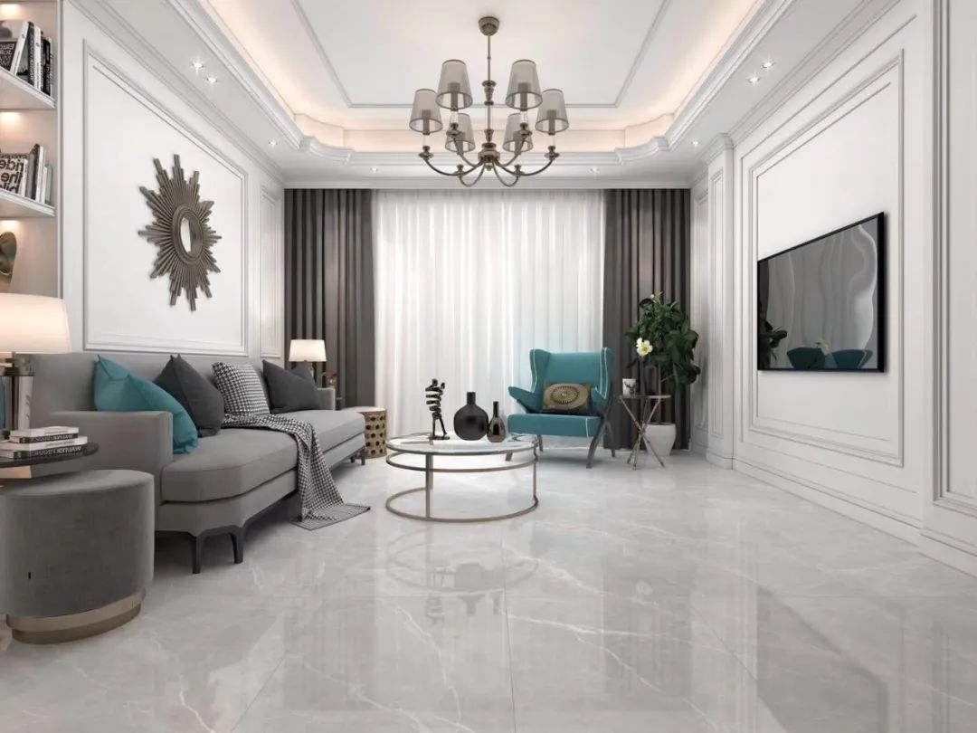 一个漂亮的高级灰空间,是需要多个元素组成的客厅瓷砖装修效果图,比如:瓷砖、家具、软装、灯……灰色瓷砖就是最常见的元素,它们看似样式简单,却发挥着大大的能量,稍作搭配,就能轻松让家搭出高级感。