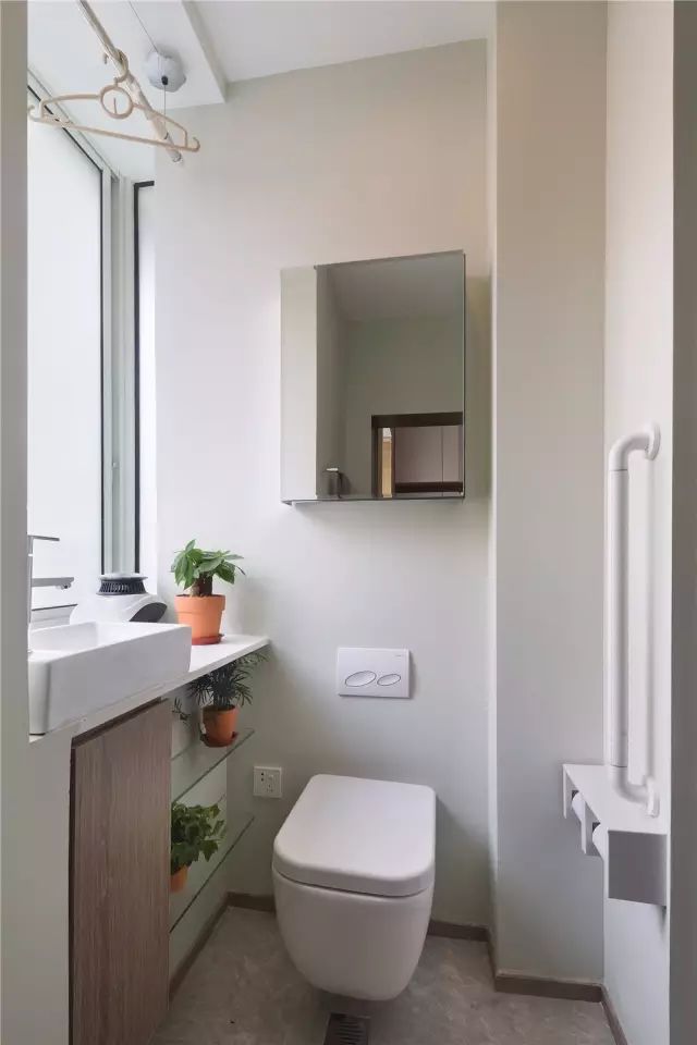 佰富彩▲靠窗的地方还设计了一个迷你的马桶区,也是为了方便老人平时的使用。