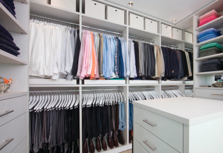 衣柜里,建议尽量把衣服(除了挂久变形的毛衣)挂起来收纳,不仅方便取放,衣服也一目了然。短装衣服的空余空间可放置抽屉式收纳盒,但注意尽可能统一尺寸,这样方便做叠加组合。