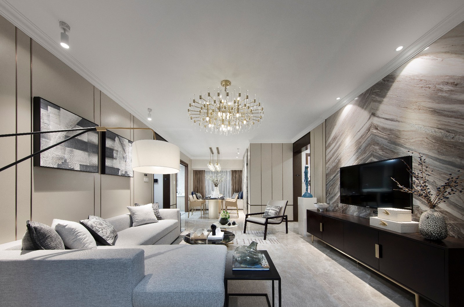 客厅电视背景墙装修效果图WSD·壹家创意:佛山中南滨江现代简约客厅设计图片赏析