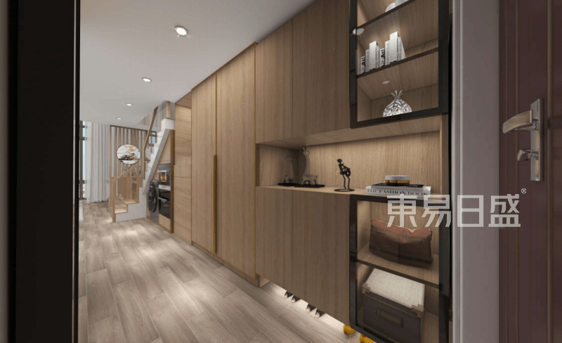 一居室-新中式-效果图,客厅沙发背景墙采用了大面积的原木色护墙板,增加原木色系在整个空间的比重,中间适当的留白,丰富空间层次感,提高空间的观赏度。一居室-新中式-效果图,偏禅意...