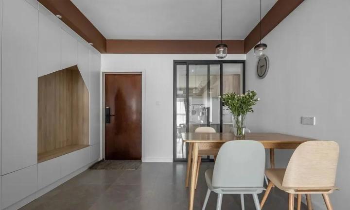 佰富彩本案例是一套95平北欧简约三居室,装修上,家具及局部背景墙以原木色为主,地面铺灰色瓷砖,整个空间效果挺简洁、时尚、温馨的。入户看向客厅,空间因为木质元素的运用,显得格外舒适、...